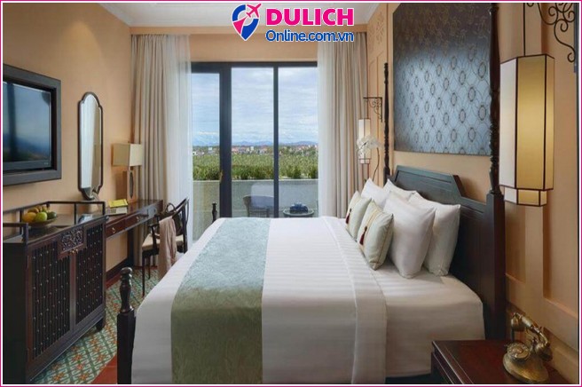 Deluxe River View (40 m²): Ban công riêng, view sông Thu Bồn, tối đa 2–3 khách.