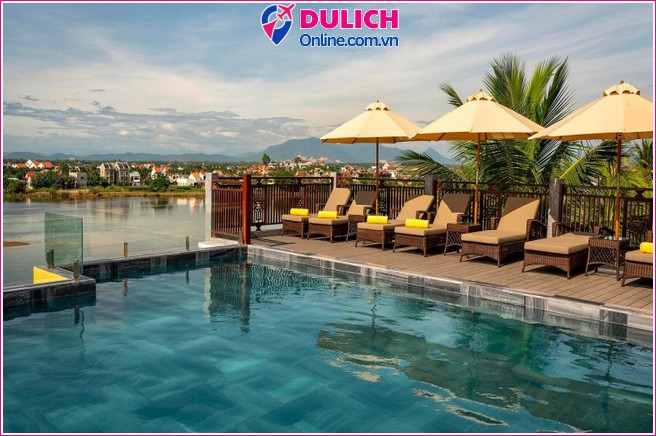 Tiện ích: bể bơi rooftop, spa, gym, nhà hàng The Traders, rooftop bar, xe đưa đón biển An Bàng. Địa chỉ: 09 Phan Bội Châu. Gần Phố cổ (500 m), Chùa Cầu (700 m), biển An Bàng (5 km). TripAdvisor 9,2/10; Du lịch Online 9,3/10.