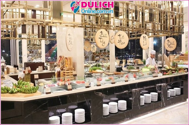 Ẩm thực đa dạng: Nhà hàng buffet, thực đơn Á – Âu phong phú, quầy bar sang trọng.