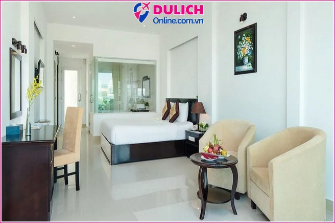 Du lịch Online: chấm 8.2/10 – phù hợp cho du khách muốn đặt phòng khách sạn Phan Thiết giá rẻ với không gian rộng rãi, nhiều tiện ích giải trí.